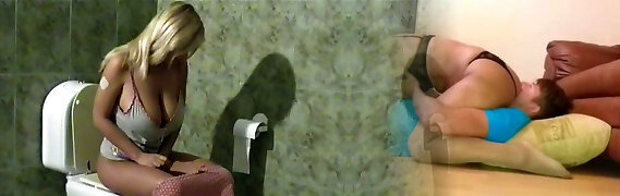 big boobed slut ottiene solo orgasmi mentre seduto sul water