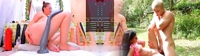 girly-ragazza honies allungato il loro profondo assfucking cazzo fori e ride enorme falso pene