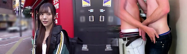un piccolo giapponese con una bacchetta nella sua figa ambles in giro per la città e ottiene duro fuck-a-thon