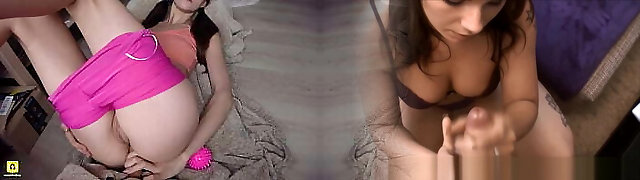 ardente massiccio dai capelli castani mamma stringe il pene finto tra il suo grasso slack battenti
