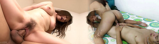 con i capelli scuri e, giapponese casalinga con grandi tette è avvitare un folle ragazzo che non è il suo complice