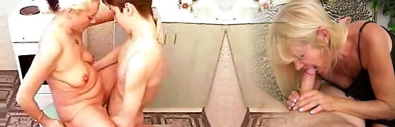 Lusty blonde mature teaches two nubiles to be lesbians