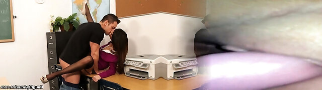Gorgeous secretary indulges in sizzling office XXX binge, gets trampy with wand.