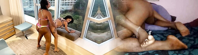 Interracial enormous fuck-stick blow job-stimulation darksome ladyboy pair