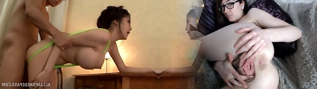 Miki watches the rhythm her humungous boobs make while a hard man sausage drills her cunt from the back