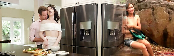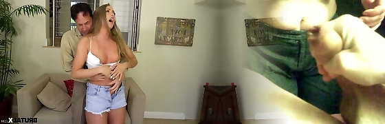 Cute young brunette Mia Evans is eager for crazy sex with experienced old stepdad