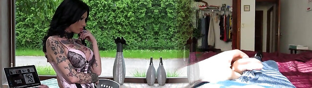 Tattooed MILF Jenna Swhite gives a blowjob and rails his hard schlong