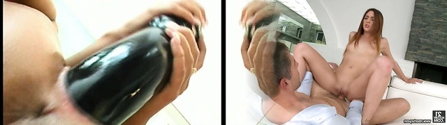 Huge dildo is used to please palatable skinny titless first-timer nympho