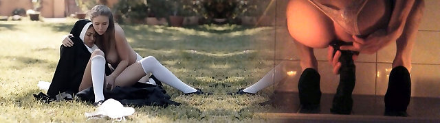 Lusty nun Lena Paul gets nude as it is time to lick wet beaver outdoors