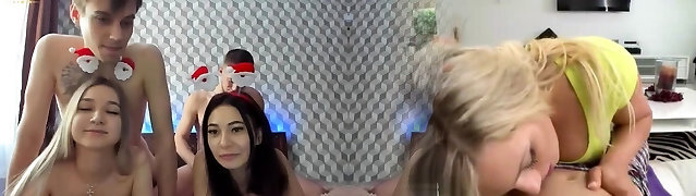 2 slutty Russian teen suck cocks and get plowed hard live