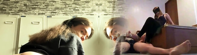 Amateur adorable platinum-blonde and brunette girls doing blowjob